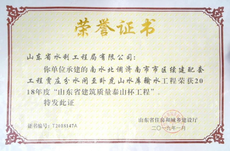 近日,山東省建筑業(yè)協(xié)會(huì)公布的2018年度山東省建筑質(zhì)量“泰山杯”工程名單中,由我公司承建的南水北調(diào)濟(jì)南市市區(qū)續(xù)建配套工程賈莊分水閘至臥虎山水庫輸水工程榜上有名。山東省建筑工程質(zhì)量“泰山杯”獎(jiǎng)是山東省建筑工 ...